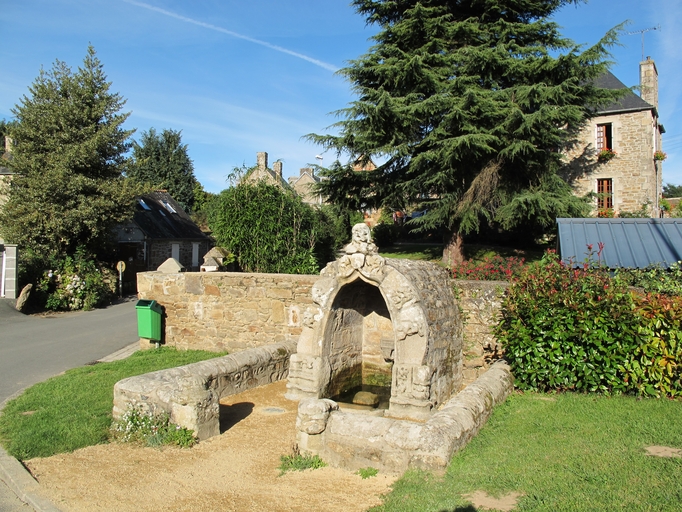 Le Vieux-Marché, le bourg, place Angela Duval : fontaine de dévotion, vue de situationImmatriculation