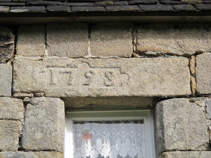 Le Vieux-Marché, Keramborn : logis, détail du linteau daté "1798" de la fenêtre de l'étageImmatriculation