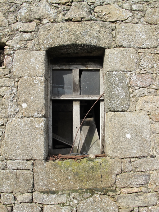 Le Vieux-Marché, Kerlohou : ferme, façade sud, rez-de-chaussée, fenêtre centrale à linteau délardé en arc segmentaireImmatriculation