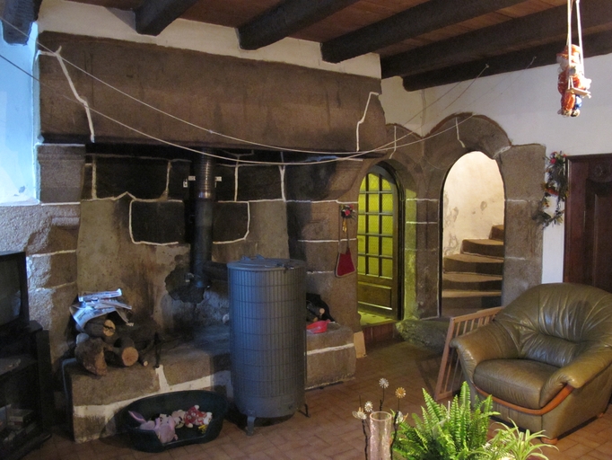 Le Vieux-Marché, Launay : manoir ( ?), vue intérieure, rez-de-chaussée, cheminée, portes donnat sur une deuxième salle et sur l'escalier en visImmatriculation