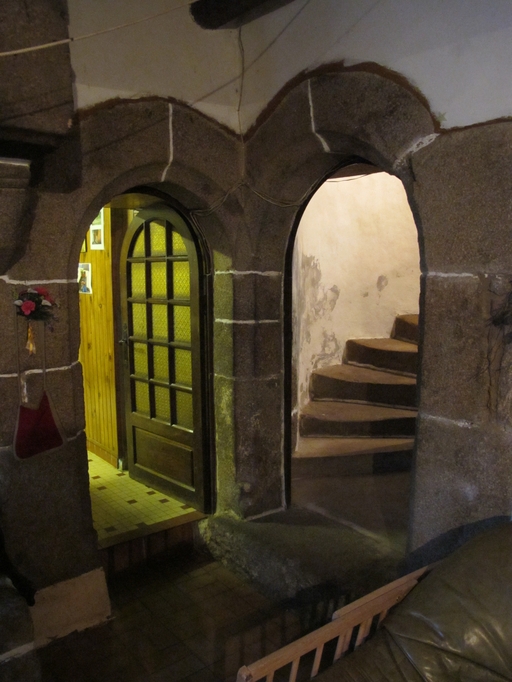 Le Vieux-Marché, Launay : manoir ( ?), vue intérieure, rez-de-chaussée, cheminée, portes donnat sur une deuxième salle et sur l'escalier en visImmatriculation