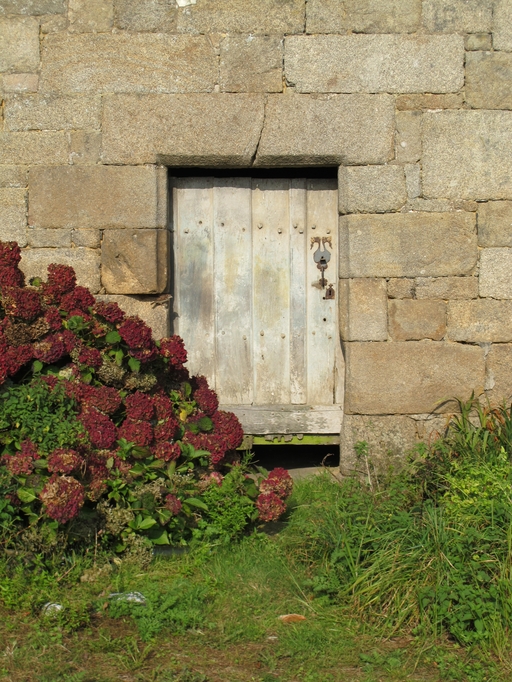 Le Vieux-Marché, Le Quinquis : ancien manoir devenu ferme, façade sud, détail de la porte rectangulaire à chanfreinImmatriculation