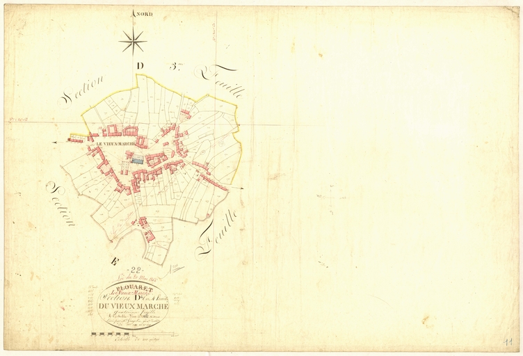 Feuille D4 du cadastre ancien de la commune de Le Vieux-Marché, 1835 : le bourgImmatriculation