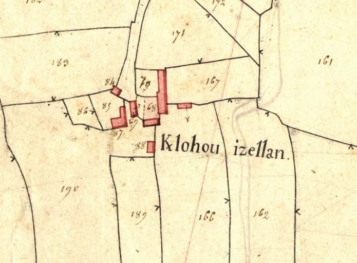 Extrait de la feuille D1 du cadastre ancien de la commune de Le Vieux-Marché, 1835 : KerlohouImmatriculation