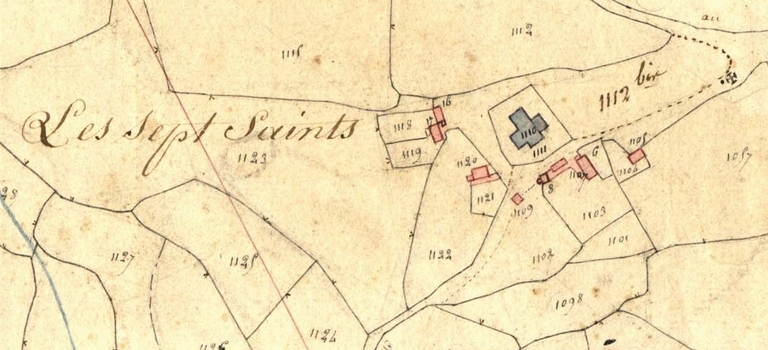 Extrait de la feuille B2 du cadastre ancien de la commune de Le Vieux-Marché, 1835 : Les Sept SaintsImmatriculation