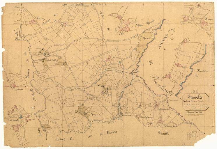 Cadastre ancien, commune de Lanvellec, 1 tableau d'assemblage et 17 feuilles, 1848.Cadastre.