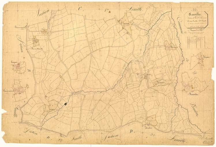 Cadastre ancien, commune de Lanvellec, 1 tableau d'assemblage et 17 feuilles, 1848.Cadastre.