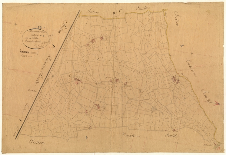 Feuille A1 du cadastre ancien de la commune de Plounévez-Moëdec, 1834Immatriculation