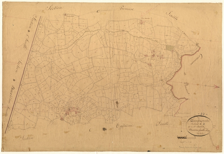 Feuille C2 du cadastre ancien de la commune de Plounévez-Moëdec, 1834Immatriculation