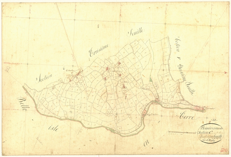 Cadastre ancien, commune de Plounévez-Moëdec, 1 tableau d'assemblage et 19 feuilles, 1834.Cadastre.