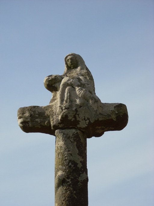 Plounérin, la Trinité : calvaire, détail de la croix, Piéta à l'aversImmatriculation