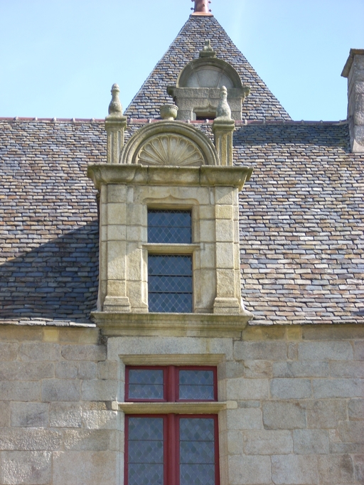 Plounérin, Lesmoal : manoir, détail de la lucarne centrale (création contemporaine)Immatriculation