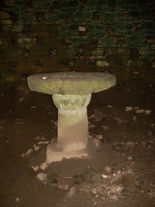 Plounérin, Lesmoal : colombier, vue intérieure, table à grain, composée d´une dalle circulaire reposant sur une colonne de 120 cmImmatriculation