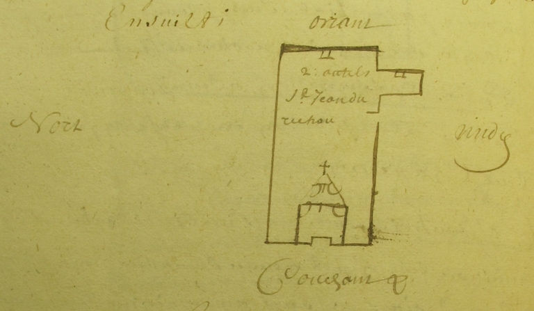 Plounérin, Ar Réchou : plan schématique de l'ancienne chapelle Saint-Jean du Réchou par le sieur d´Abeille, 1700Immatriculation