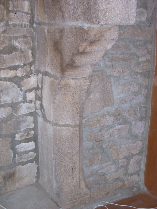 Plounérin, Scoassel : ferme, vue intérieure, étage, cheminée, détail du jambageImmatriculation
