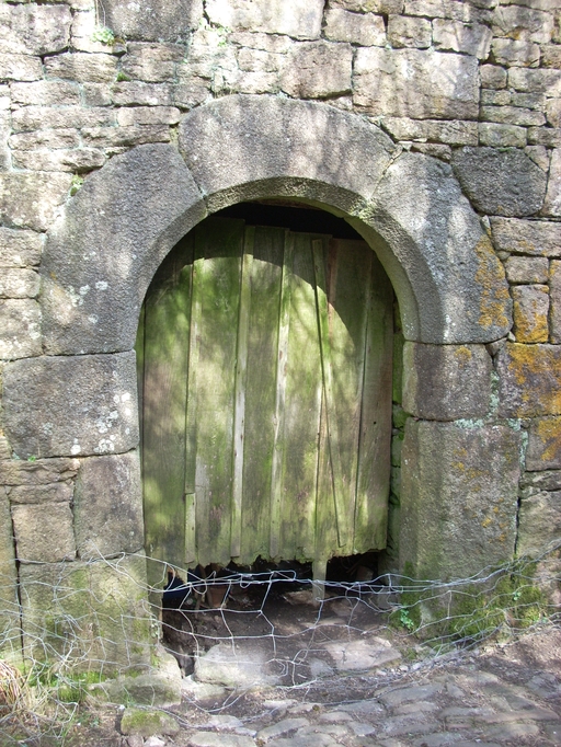 Plounérin, Toul Balaven : ferme ou maison de marchand, façade sud, porte moulurée en plein cintreImmatriculation