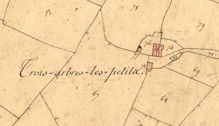 Extrait du cadastre ancien de la commune de Plounérin, 1834 : Teirgoën [Trois-arbres-les-petits]Immatriculation