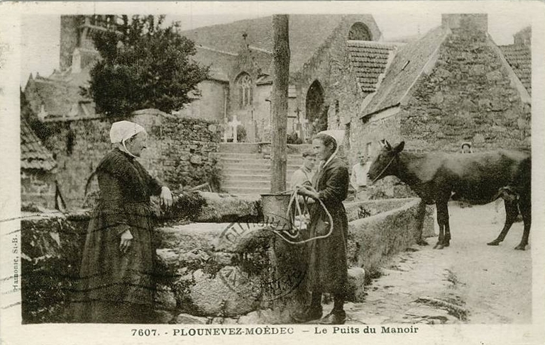 Plounévez-Moëdec, le bourg, 1 rue Bel-Air : puits, carte postale ancienneImmatriculation