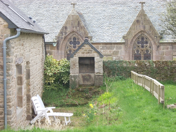 Plounévez-Moëdec, le bourg : dépendance du presbytère et puitsImmatriculation