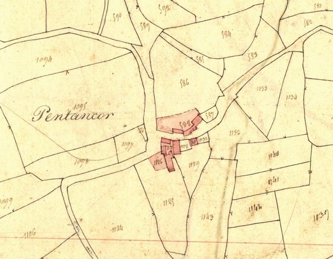 Extrait du cadastre ancien de la commune de Plounévez-Moëdec, 1834 : PentencorImmatriculation