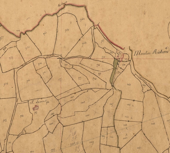 Extrait du cadastre ancien de la commune de Plounévez-Moëdec, 1834 : chapelle Saint-Lavant [Lavent]Immatriculation