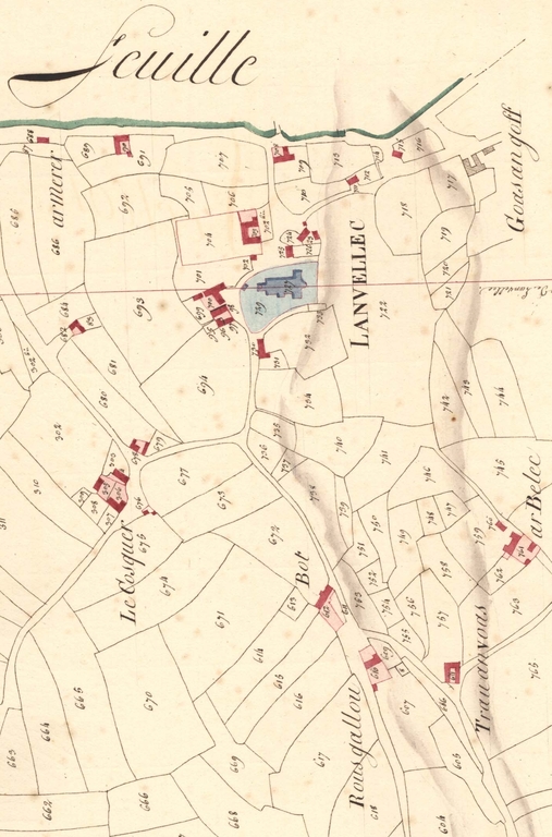 Extrait du cadastre ancien de la commune de Lanvellec, 1813 : le bourgImmatriculation