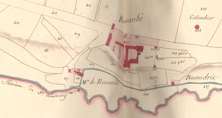 Extrait du cadastre de la commune de Lanvellec, 1813 : RosanboImmatriculation