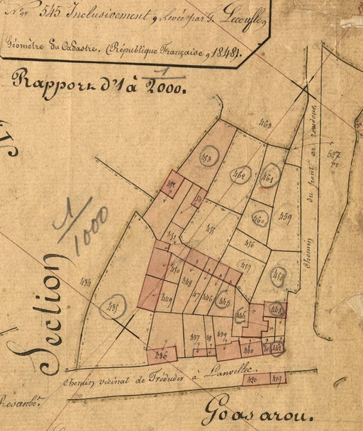 Extrait du cadastre ancien de la commune de Lanvellec, 1848 : Goaz Arou [Goas arou]Immatriculation