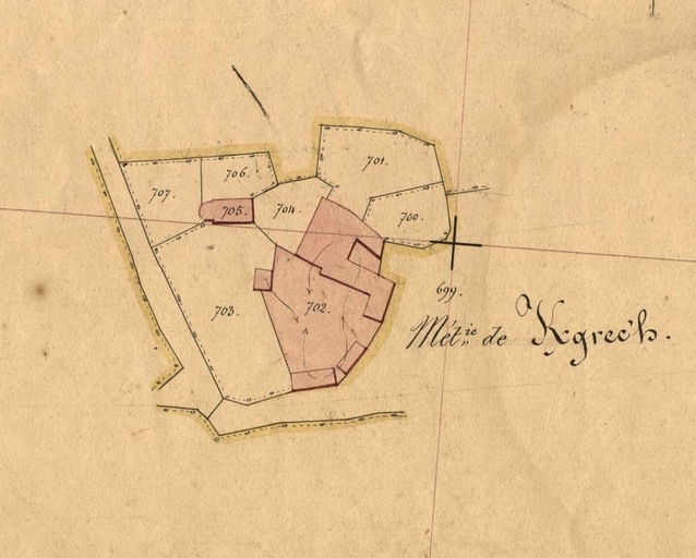 Extrait du cadastre ancien de la commune de Lanvellec, 1848 : Kergrec'h [Métairie de Kgrec'h]Immatriculation