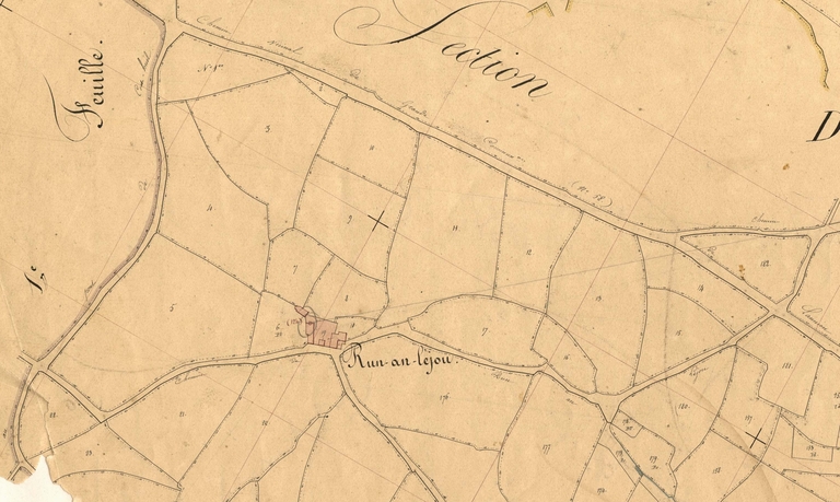 Extrait du cadastre ancien de la commune de Lanvellec, 1848 : Run ar Léjou [Run-an-léjou]Immatriculation