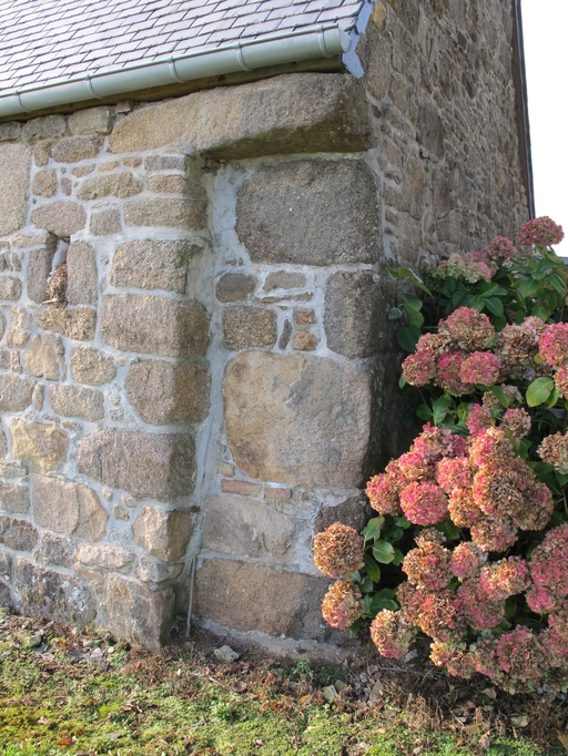 Lanvellec, Kerloas : ferme, angle nord-ouest. Il s'agit de l'emplacement de l'ancienne clôture délimitant la courImmatriculation