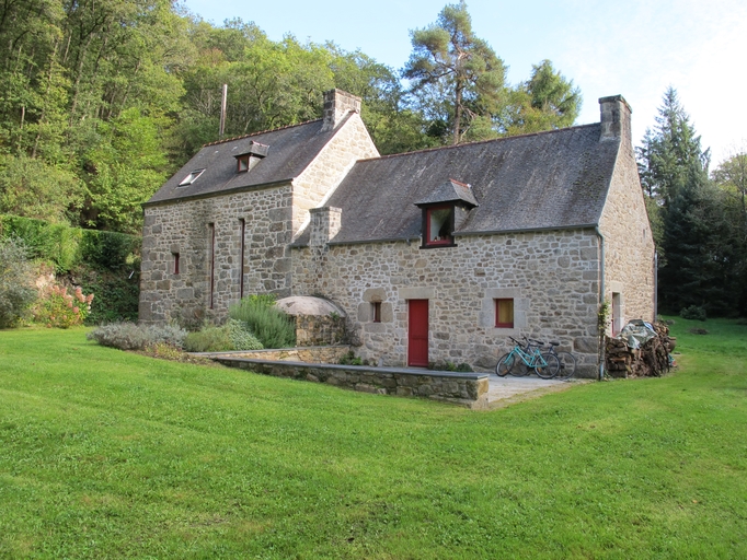 Lanvellec, Milin ar Run : ancien moulin à eau, façade postérieure orientée ouest, vue généraleImmatriculation