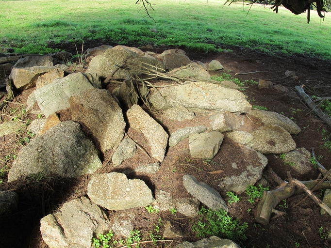 Lanvellec, Saint-Goulven, ouest : vestiges d'une carrière de granite au pied de la croix dite calvaire du RunImmatriculation