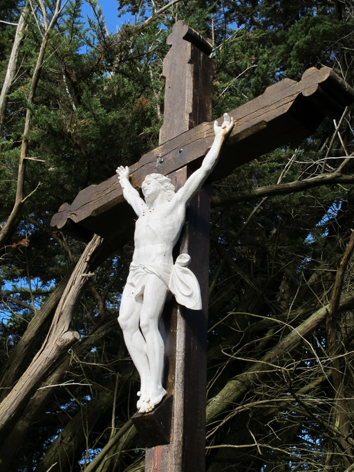Lanvellec, Saint-Goulven, ouest : croix dite calvaire du Run, détail du ChristImmatriculation
