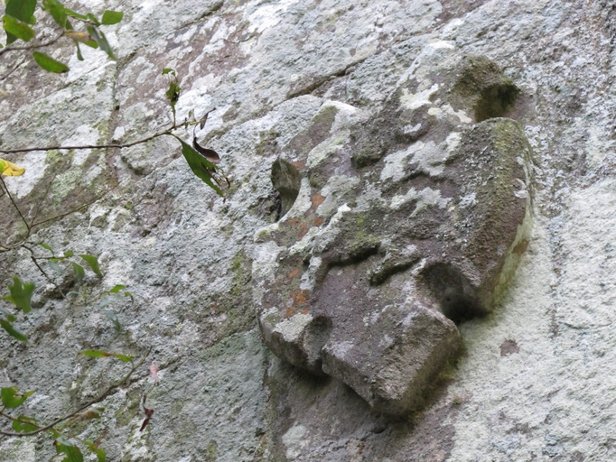 Lanvellec, Saint-Goulven : chapelle, chevet. Armoiries de famille de Quemper de Lanascol (D´argent au léopard de sable accompagné en chef de trois coquilles rangées de même)Immatriculation