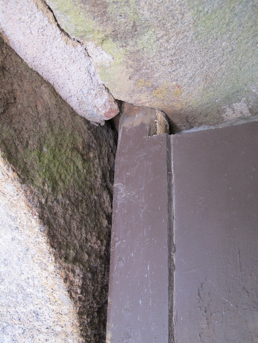 Lanvellec, Saint-Goulven : chapelle, vue intérieure. Détail de la porte sud en plein cintreImmatriculation