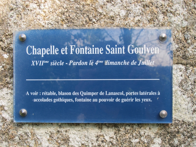 Lanvellec, Saint-Goulven : chapelle, signalétique en placeImmatriculation