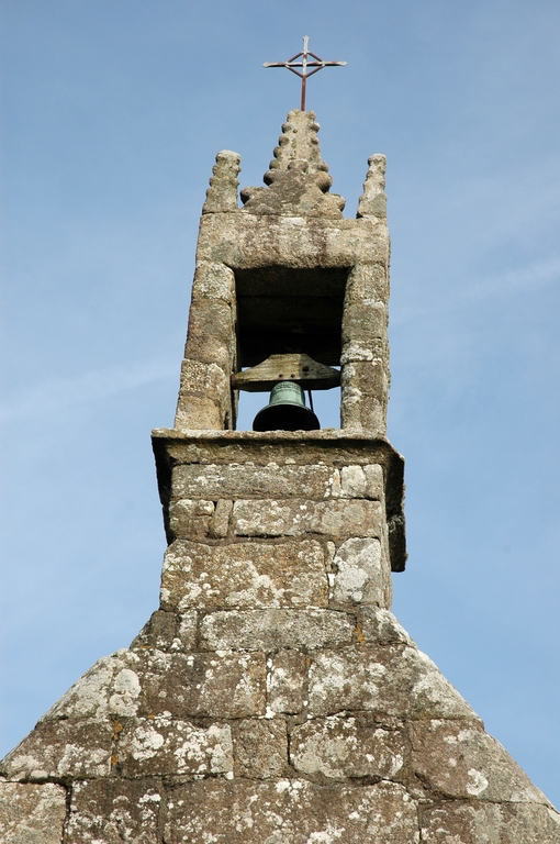 Lanvellec, Saint-Maudez : chapelle, clocheton de plan rectangulaire à chambre de cloche ajourée et orné d´une croix en fer forgéImmatriculation