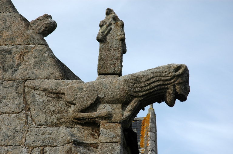 Lanvellec, Saint-Maudez : chapelle, angle sud-est, crossette sculptée représentant un lionImmatriculation