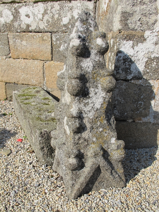 Partie sommitale d'un pinacle du chevet déposée au sol.Immatriculation