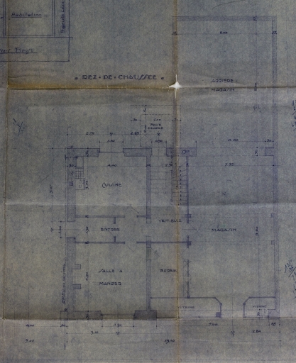 Plan au sol du rez-de-chaussée de la maison Labasque, 1948, signé Y. Ollivier et B. Papillot (collection particulière Labasque)Immatriculation