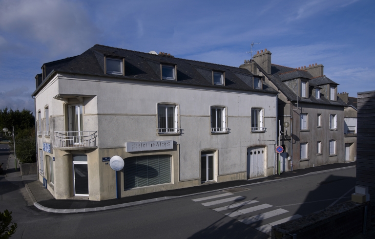 Maison d'angle avec commerce construite, après guerre, à l'emplacement d'un bâtiment existant, rue des EcolesImmatriculation