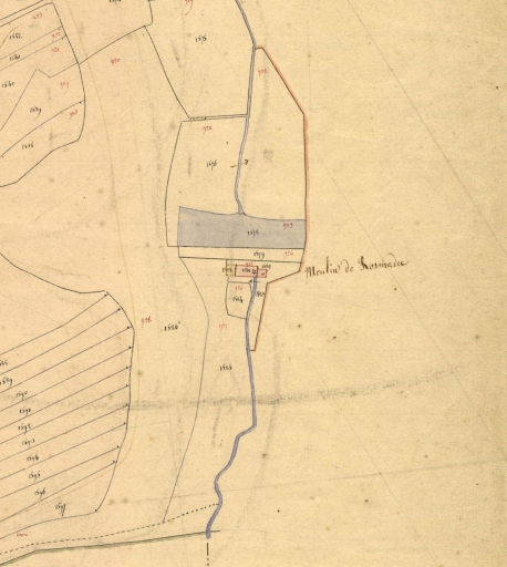 Le moulin de Rosmadec en 1831. Extrait du cadastre ancien (A.D.Finistère, 3 P 282 )Immatriculation