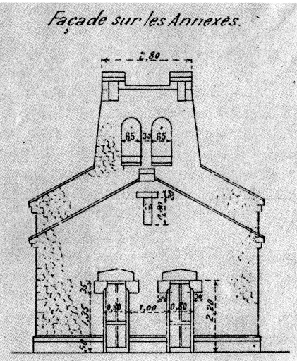 Elévation du pignon est de la gare et de ses annexes, 1er quart 20e siècle (Archives du Réseau Breton, Carhaix)Immatriculation
