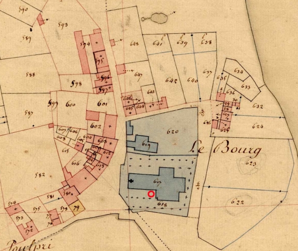 Emprise au sol de l'ancienne église. Extrait du cadastre de 1831 (A.D. Finistère, 3 P 25)Immatriculation