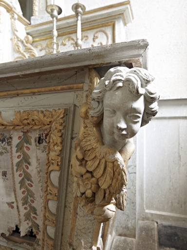 Détail de tête sculptée de l'autel de la chapelle sud.Immatriculation