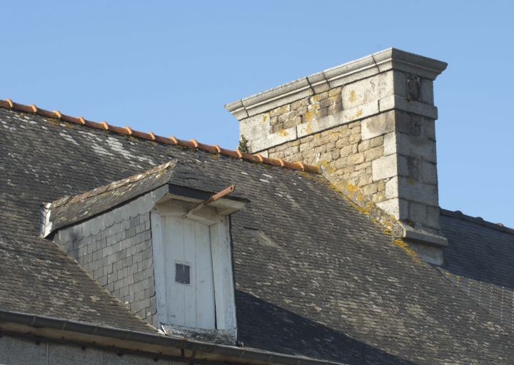 Détail d'une souche de cheminée.Immatriculation