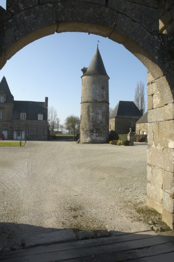Vue de la cour et de la tour de guet.Immatriculation