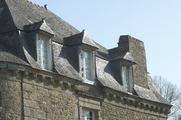 Lucarnes et corniche à modillons de la façade sud du logis.Immatriculation