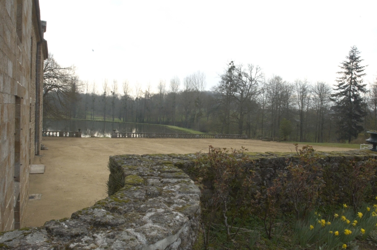 Vue de la cour et de l'étang depuis les jardins.Immatriculation